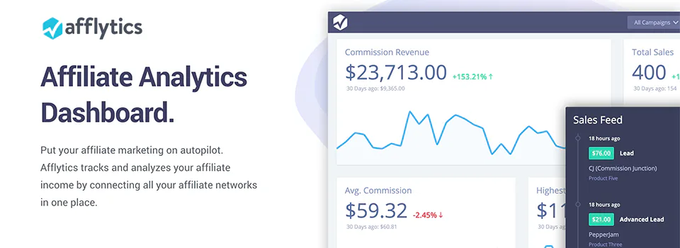 Afflytics tracks and analyzes your affiliate income by connecting all your affiliate networks in one place.